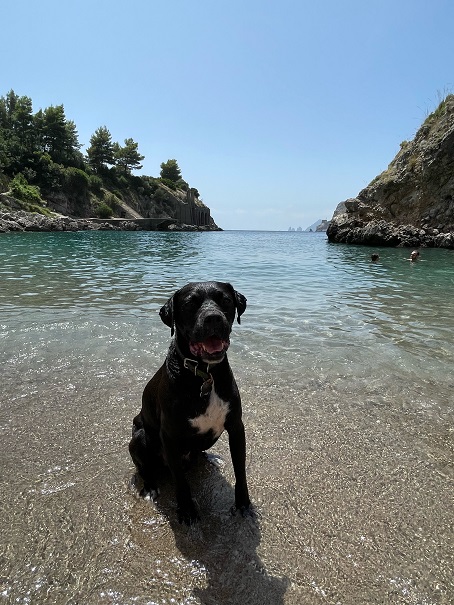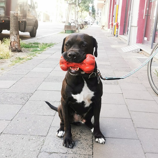 Er liebt sein rotes Spielzeug, meine Pferde zu besuchen und mit uns zu reisen.