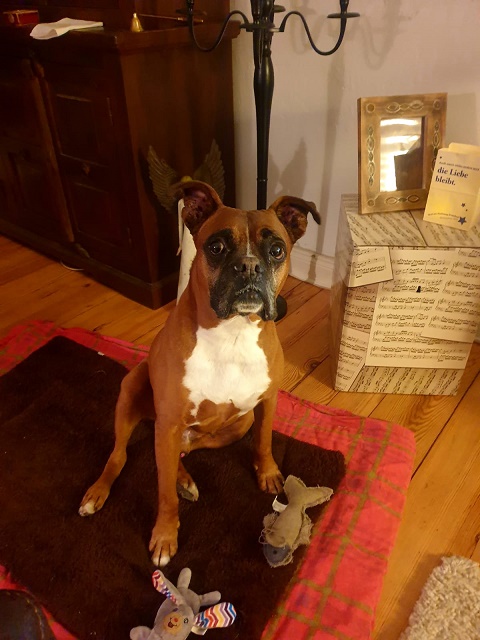 Ich bin hier der kleine Prinz und kleiner Kumpel vom schmerzlich vermissten Oswald (ehemals Thyson). Ich musste schon etliche Operationen über mich ergehen lassen. Kreuzband hinten links, Kreuzband hinten rechts, Ellenbogen vorn, mehrere kleine Gnubbels und bald noch die blöden Epuliden… aber ich hab von meiner Fröhlichkeit nichts verloren.