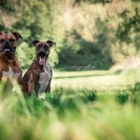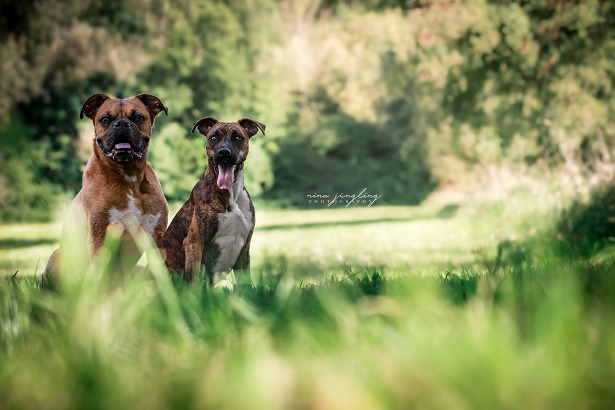 Viola, Mario, Teddy und Sheela mit Mausi und Baghira