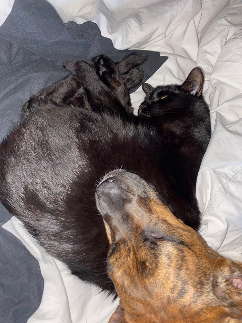 Kuscheln mit den Katzenkumpels ist bei dem Wetter Priorität Nummer eins.