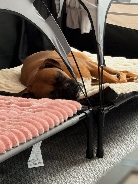 Stephano geht es blendend. Er fährt sehr gerne mit uns in unserem Wohnwagen auf Urlaub.