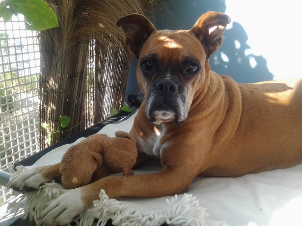 Sie ist ein Traumboxer, ein grosser Schatz und bis jetzt gesund und sehr wild, besonders im Wald und mit anderen Hunden.