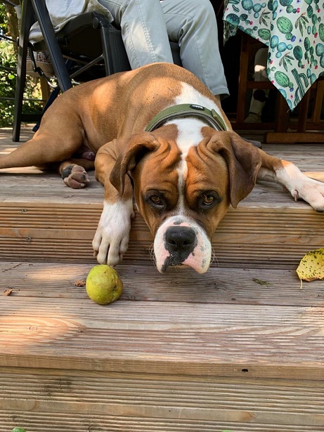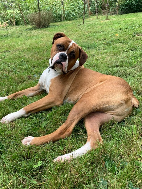 Sein Zuhause hat einen großen Garten mit viel Platz zum spielen.