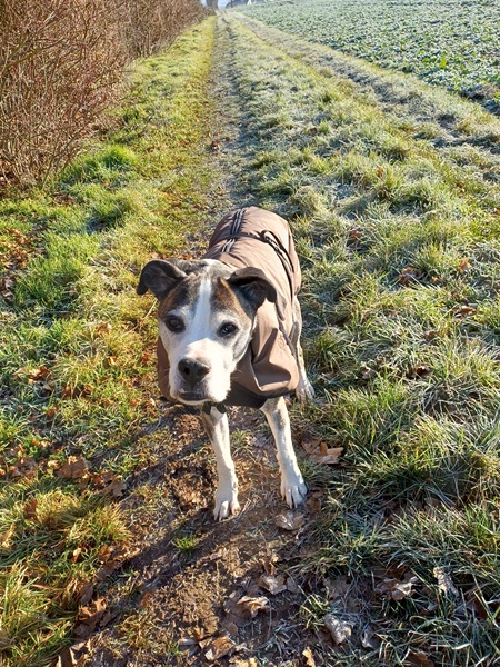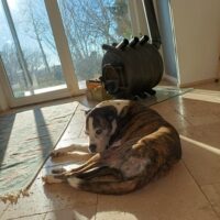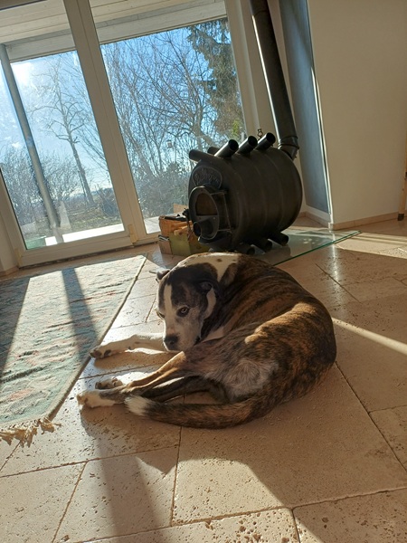Nach einem ausgiebigen Spaziergang genießt Willi die Sonne vor dem warmen Ofen. Sein neuer Lieblingsplatz.