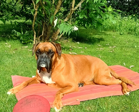 Er liebt seinen Sonnenplatz und ist viel ruhiger geworden, auch kann er nicht mehr so gut hören wie früher, aber das ist ja ganz normal.