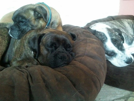 Ich habe sogar eine Boxer- Kumpeline hier, wir kuscheln und schnarchen wann immer wir Zeit dazu finden.