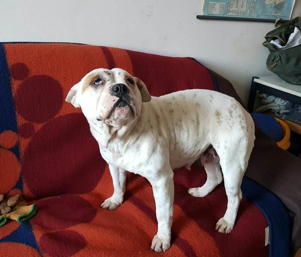 Ich bin Blanca, ein Boxer-Engl. Bulldoggen-Mix-Mädchen aus Rumänien.