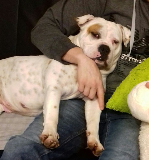 In der ersten Nacht im neuen Heim durfte sie sich an Herrchen und Frauchen kuscheln. Nun dreht sie täglich drei Runden mit ihrer neuen Familie und wenn sie heim kommt, ist futtern und schlafen angesagt.