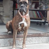 Wie alle Boxer bin ich sehr lieb und freundlich zu jedermann. Sicherlich habe ich schon vielen Welpen das Leben geschenkt und bin auch bereits etwas älter. Wahrscheinlich hatte ich einfach ausgedient. Hier bei Dietgard lebe ich mit einem kleinen Rudel verschiedener Hunderassen zusammen. Wir verstehen uns alle prima.