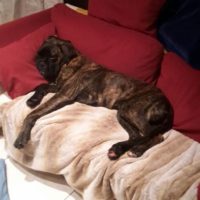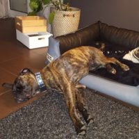 Er fühlt sich einfach boxerwohl! Seinen eigenen Platz im Haus hat er sich selber ausgesucht.