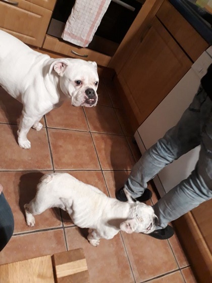 Nicht das wir anstrengend sind – es liegt wirklich nur an unsere ehemaligen Besitzerin. Denn, wir sind 2 wirklich gut erzogene kleine Bullie Mädchen. Mit Artgenossen und Katzen verträglich. Jedoch wohl etwas verwahrlost und unterernährt.