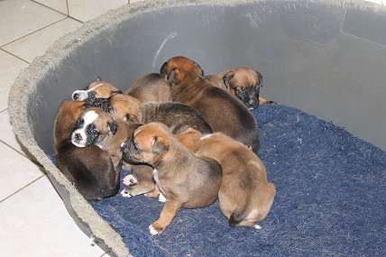 Über den Vater der Welpen haben wir nicht lange gerätselt, es kann nur ein Boxer gewesen sein mit dem Zoe sich eingelassen hatte, denn die Welpen sehen nicht nur alle aus wie kleine Boxer , der Tierarzt hat dies auch bestätigt.