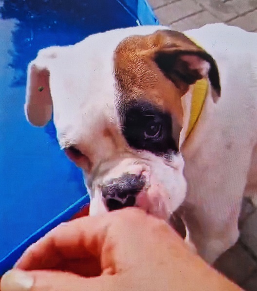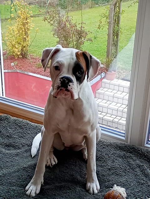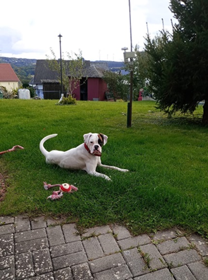 Brittney ist eine gelehrige Boxerschnute, deshalb sollte man dies fördern und eine Hundeschule besuchen. Auch das Alleinbleiben muss noch mit ihr geübt werden.