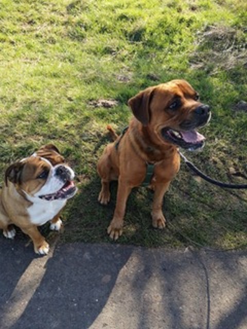 Besonders mag ich aber meine neue Freundin, die Bulldoggenhündin Davina! Mit ihr kann ich immer so schön toben. Sie ist ein paar Jahre jünger als ich und hält mich ordentlich auf Trab.