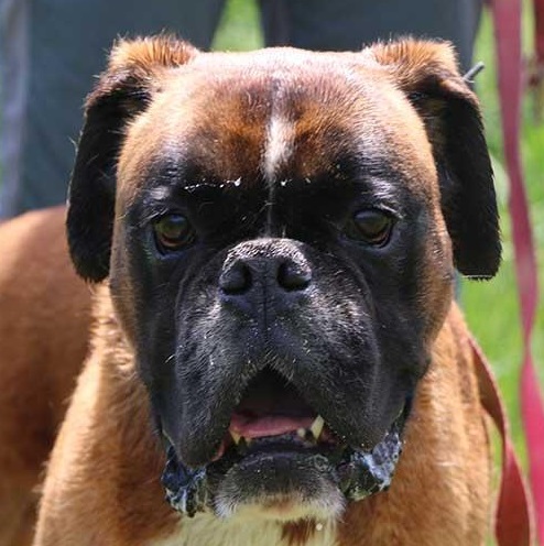 Wesen: sehr menschenbezogener und verschmuster Boxer, sehr artig und leinenführig