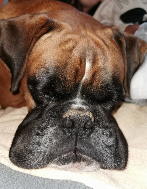 Seid nunmehr 2 Wochen bin ich auf meiner Pflegestelle und es gefällt mir richtig gut! Man sagt hier ich sei ein wirklich netter und freundlicher Boxer – eher von der ruhigen Art.