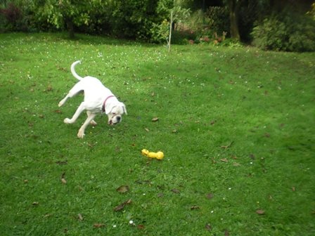 Er ist noch sehr jung und unerzogen. Sicherlich hat sein bisheriger Besitzer sich nicht viel mit ihm beschäftigt. Boxertypisch ist er sehr aktiv. Bruno liebt Spoaziergänge, doch macht erst einmal ein Riesentheater an der Leine, bis er sich dann beruhigt. Mit anderen Artgenossen fühlt er sich sehr wohl. Allerdings ist er fressneidisch, wobei man dann ein wenig aufpassen muss.