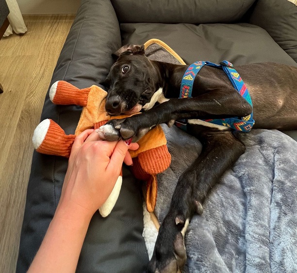 Bei meiner Ankunft war schon alles super vorbereitet. Überall Kissen und sooo viele Spielsachen, die musste ich sogleich mal austesten. Meine Freundin Maggie vermisse ich schon ein wenig, aber ich glaube sie mich auch (auch wenn ich manches Mal etwas frech war). Neue Hundekumpels habe ich auch schon gefunden und das Enkelkind hat sich auch schon vorgestellt. Ganz schön aufregend, das kann ich euch bellen.