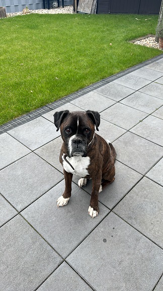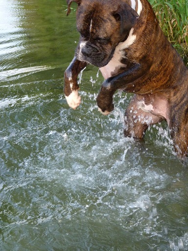 Er ist ein sehr ruhiger Boxer. Stundenlang kann er einfach da liegen und den anderen beim Spielen zu sehen.