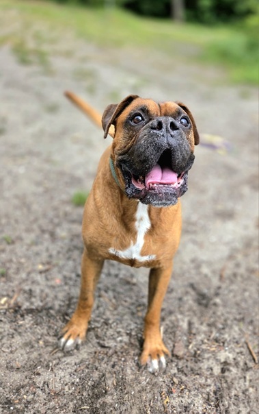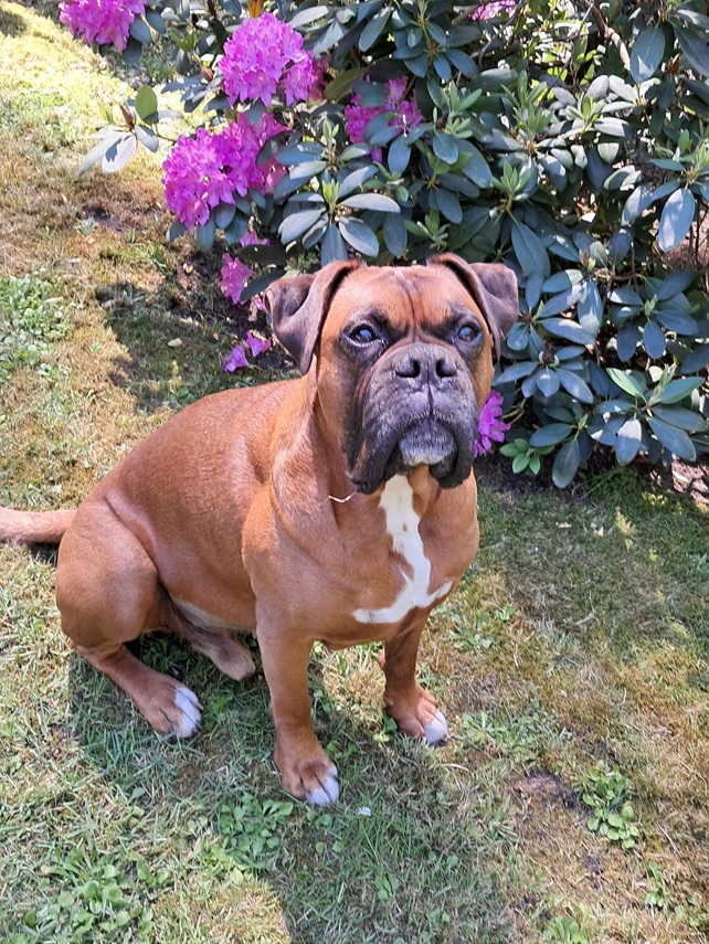 Carlos ist gut erzogen, läuft gut an der Leine, kann aber boxertypisch auch den Clown geben. Er ist immer freundlich zu allen Zweibeinern und geht gerne Spazieren.