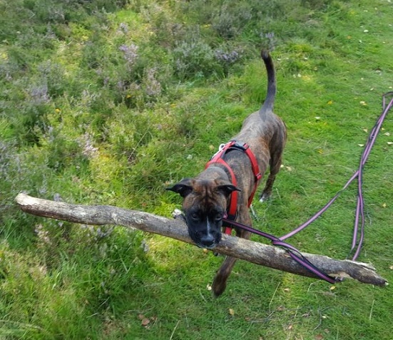 An der Leine gehe ich ganz gut, hin und wieder ziehe ich mal an der Leine, wenn es Interessantes zu sehen gibt. Ohne Leine höre ich sofort auf Pfiff und bin super abrufbar.
