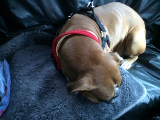 Wie ihr auf dem Bild sehen könnt, hab ich es mir gleich auf dem Weg in mein neues Zuhause gemütlich gemacht und schön geschlafen. Ich habe mir im Traum schon ausgemalt wie schön mein neues Zuhause sein wird.