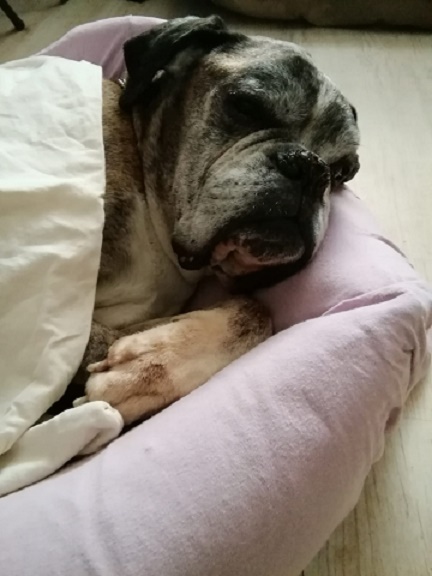 Die letzten Wochen baute er immer mehr ab. Palliativbetreuung ist seinem Herrchen beruflich nicht fremd und so hatte Cassini auch eine würdevoll Zeit, bis er in seinen Armen die Reise über den Regenbogen antreten mußte. Thomas, wir danken dir für deine Liebe und Fürsorge!
