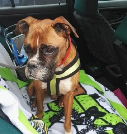 Draußen schaut der Rüde jedem Auto hinterher, an den parkenden schnuppert er – dem Verhalten nach hat er mit seinem Halter in letzter Zeit in einem Auto gelebt. Der Besitzer hat sich nicht gut um ihn gekümmert. Cassius ist dünn, eine Kralle ist ausgerissen, er hat eine schorfige Nase und tränende Augen.