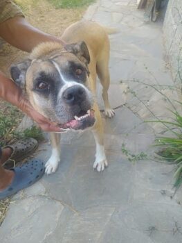 Mía Nonna ist eine liebenswerte Boxermix Hündin, geboren am 12.04.2015, die die letzten zwei Jahre in einer Pererra verbringen mußte. Nun wird sie bei unseren Partnern liebevoll betreut.