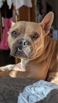 Lulu ist eine liebevolle, französische Bulldoggenmix-Hündin, die von ihren bisherigen Menschen abgegeben wurde.