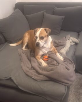 Camino geht es super, er ist fit und gesund. Wenn man ihn fragt, hätte er gerne 10 Mahlzeiten mehr am Tag und zwischen jeder Mahlzeit noch 4 Snacks – er ist ein großer Bettler, mit dem 100% perfekten Hundeblick.