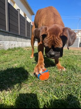 Sie hat gut zugenommen, kommt gut zurecht mit den anderen Hunden und rennt herrlich verrückt mit ihrem Ball durch die …