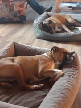 Luna und unser Senior Buddy verstehen sich auch super. Mal wird wild getobt und mal gemeinsam ausgeruht. Sie ist sehr anhänglich und verschmust.