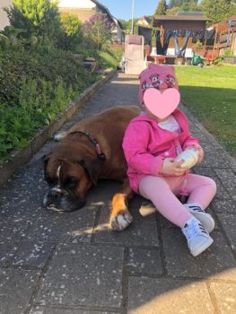 Es geht ihr sehr gut, sie liebt lange Waldspaziergänge, den Urlaub am Meer, das Toben am Strand und nicht zuletzt die Touren mit dem Fahrrad. Sie ist ziemlich fit, hat ein spezielles Zuggeschirr …