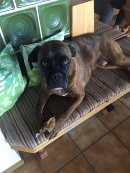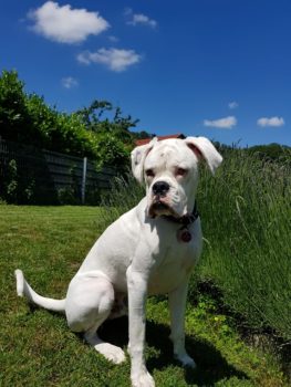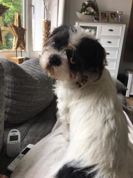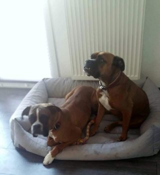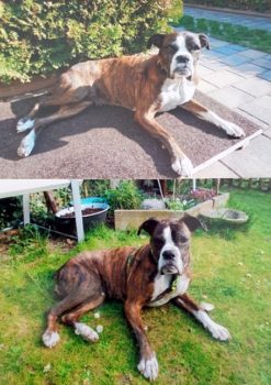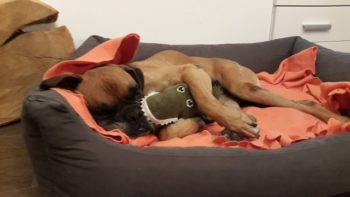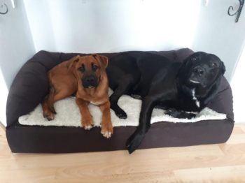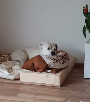 ich melde mich aus meinem neuen tollen Zuhause – Haus, Garten, ein eigenes weiches Hundebett bei Frauchen und Herrchen.
