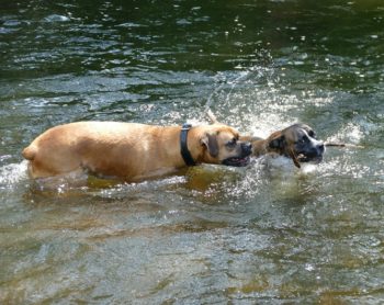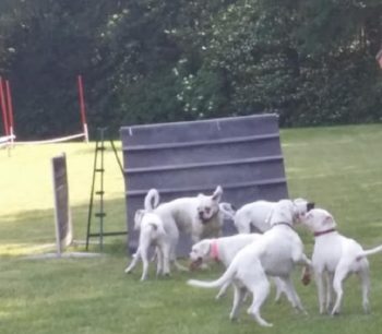 In der Nachbarschaft sind viele Hunde mit denen ich toben und spielen kann.