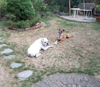 Ango und Alice geht es gut, die beiden toben hier gerade durch’s Wohnzimmer. Ango wird im Frühjahr schon 10, aber er ist boxertypisch nach wie vor verspielt, wie ein junger, nur die Kondition von Alice pakt er dauerhaft nicht mehr ;-). Was er an Masse einbringt gleicht sie durch Tempo und Beweglichkeit …