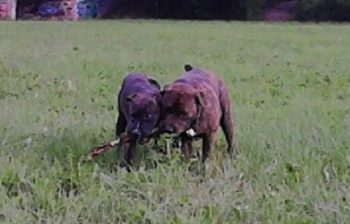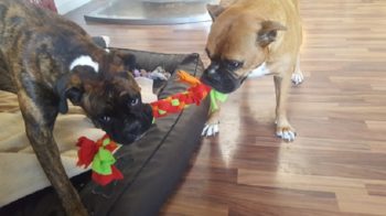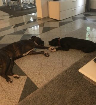 Emma hat auch schon Ihre Hundeliebende, einen Boxer 2 Jahre alt, namens Duke gefunden, den wir mindestens 1 mal wöchentlich treffen. Dabei geben Sie alles!!!!