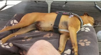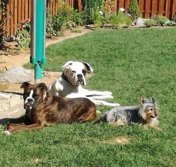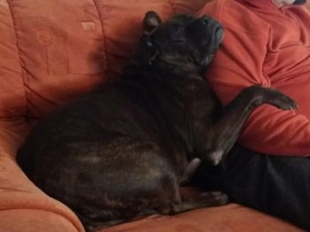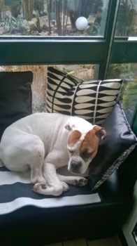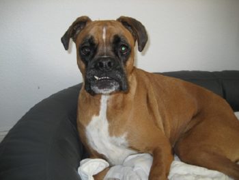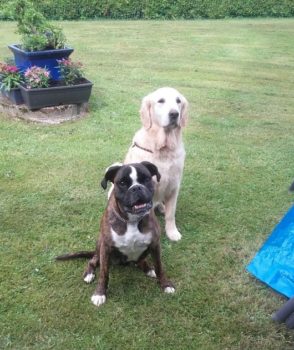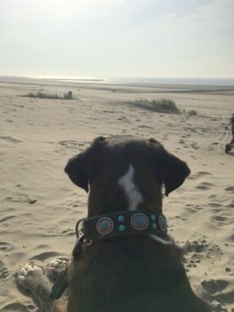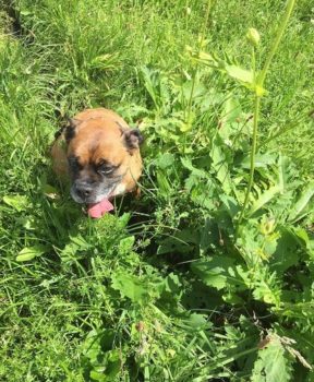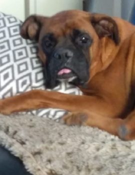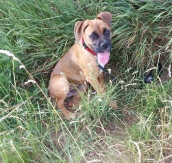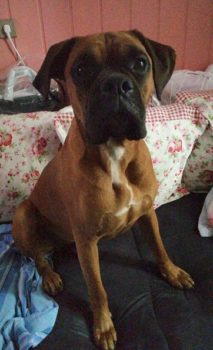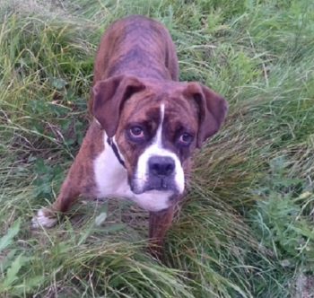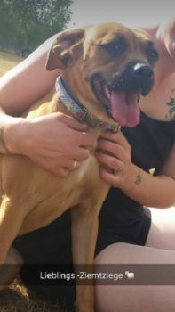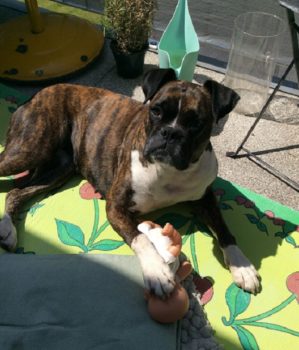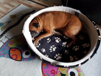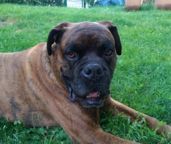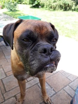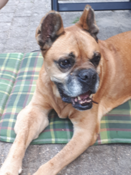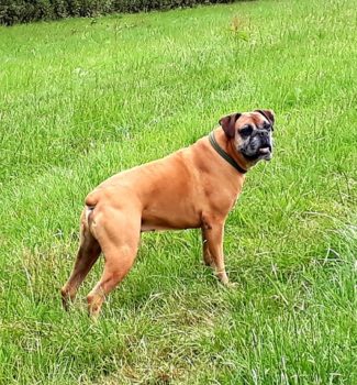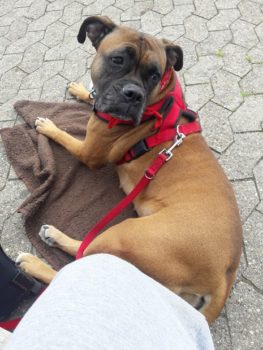 So langsam wird sie ein fröhlicher Boxer, der sich beim Spazierengehen auch mal ein paar Meter nach vorne wagt. Sie hat auch keine Probleme mit kleinen kläffenden Hunden, sie bleibt total gelassen.