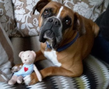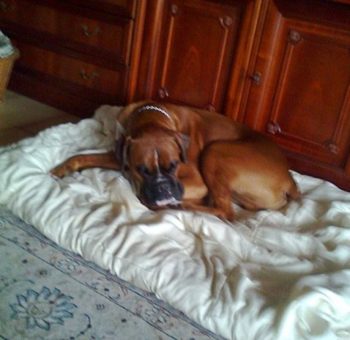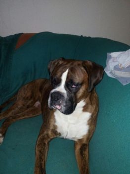 Unserem Zeus geht es sehr gut. Glücklicherweise hat er nun doch ordentlich an Gewicht zugelegt (34,5 kg) und scheint sich bei uns boxerwohl zu fühlen.