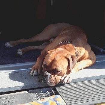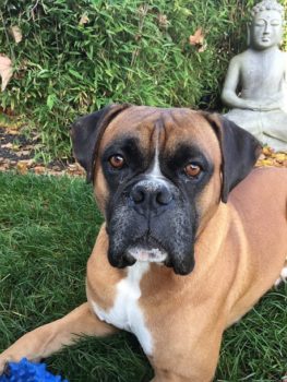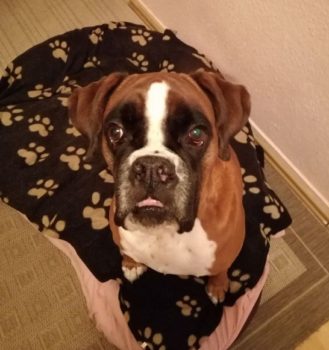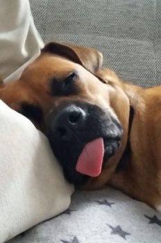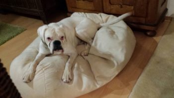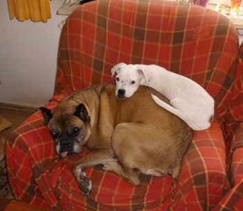 Hier ist es wunderbar. Die Herrchen verwöhnen mich total. Die beiden großen Boxer, Tommy und Gitti sind total nett.