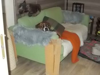 Wir sind zur Zeit wieder in Schweden und Lupi geniesst die Kälte und den Schnee. Wenn man dann nach dem Spaziergang wieder im gemütlich warmen Haus ist, baut man sich erst mal eine schöne warme Hütte auf dem Sofa – …