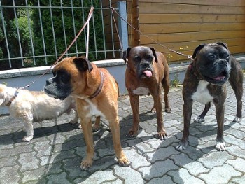 Wie Ihr seht fühlen wir uns alle boxerwohl. Ich der Opi Djoni hab schon 2 kg zugenommen und kann jetzt schon mit meinen Kumpels spielen – das macht