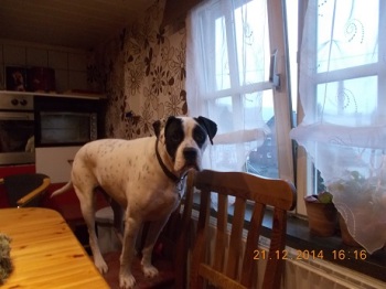 Habe jetzt endlich ein großes Haus mit großem Grundstück was ich bewachen kann. Toll ist es hier, da ich immer um das ganze Haus rennen kann.