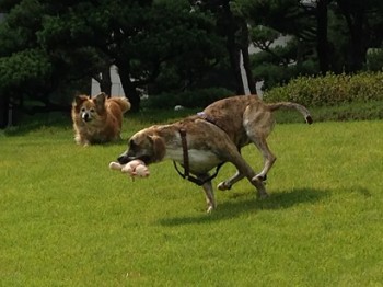 Wo sie vorher beim Gassi gehen meist neben einem her schlurpte, tobt, rennt, springt und wälzt sie heute nun. Die Entfernung des entzündeten Uterus muss echt viel ausgemacht haben. Nun ist sie wirklich eine zweijährige, …