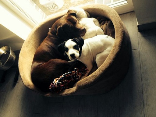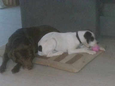 Ich habe den beiden erst mal ordentlich übers Gesicht geschleckt und mich ordentlich gefreut. Dann war ich aber so müde das ich während der Autofahrt geschlafen habe. Dann waren wir da. Wir also rein ins Haus und juhu da war noch ein Hund. Ein großer Labbi, denen habe ich erst mal gezeigt dass ich Temperament habe, ich bin durch Haus gerannt und habe richtig aufgedreht.