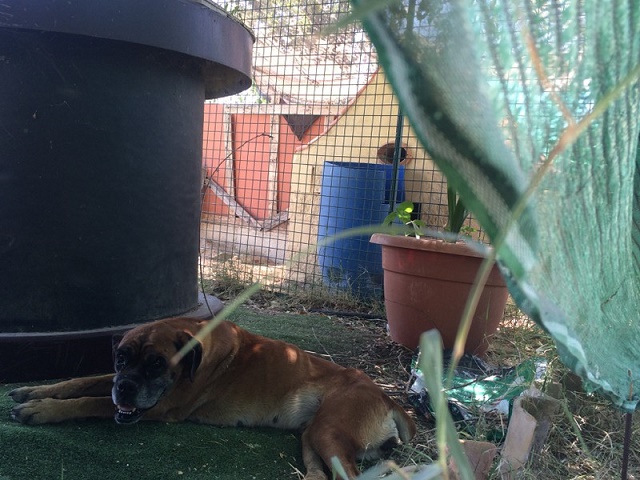 Die Boxerhündin Chata befand sich in einem Zwinger, im hinteren Bereich der Finca. Hier gab es die Möglichkeit der Nachbarn, sie mit Futter zu versorgen. Das war ihr Glück! So war man ja auch überhaupt auf die Tiere aufmerksam geworden.