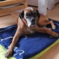 Vor nunmehr 2 Wochen wurden wir um Hilfe gebeten, für diese Boxerhündin. Die Polizei in Sevilla wurde zu einer verlassenen Finca gerufen. Dort sollten sich Hunde befinden, in schlechtem Zustand und ohne Versorgung.