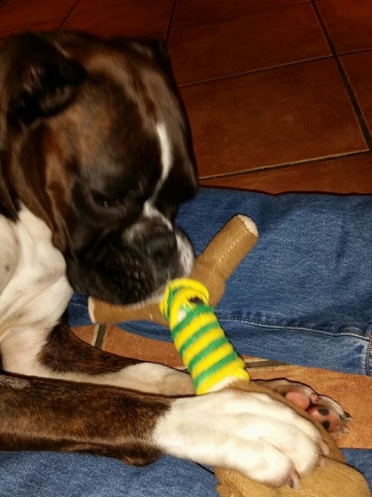Cheste ist eine sehr liebe Boxerhündin. Noch ein wenig dünn – aber ansonsten verspielt, freundlich uns verschmust.