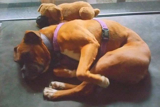Clara hat sich hier gut eingelebt. Ihren Alltag meistert sie löblich mit unserem Boxer Leo.